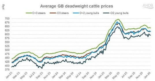 Average GB deadweight cattle prices