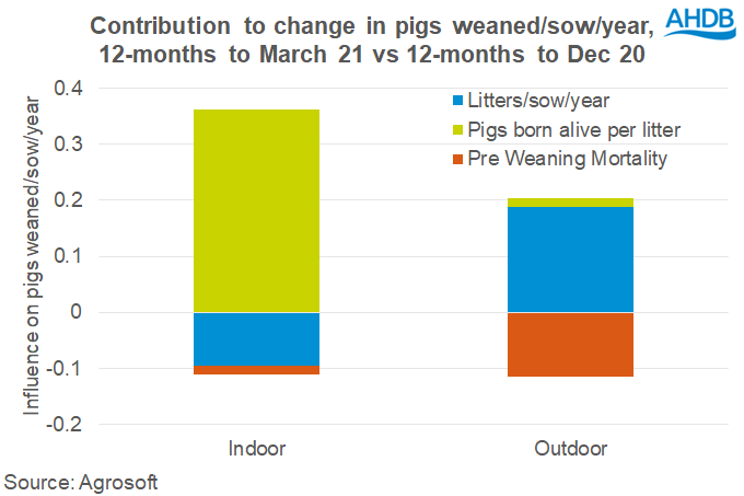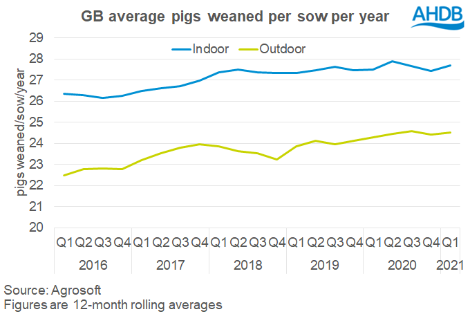 Performance results for the twelve months ending March 2021 show the performance of GB sow herds picked up early this year.