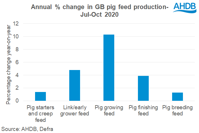 Breeding pig feed output was higher on the year, rising by 1%. This was different to the position earlier in the year; production had been slightly lower than 2019 during Q2 2020.